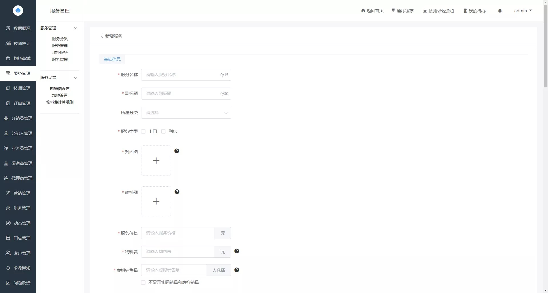 30、服务管理(新增服务分类、加钟服务、服务审核、服务设置、加钟设置)