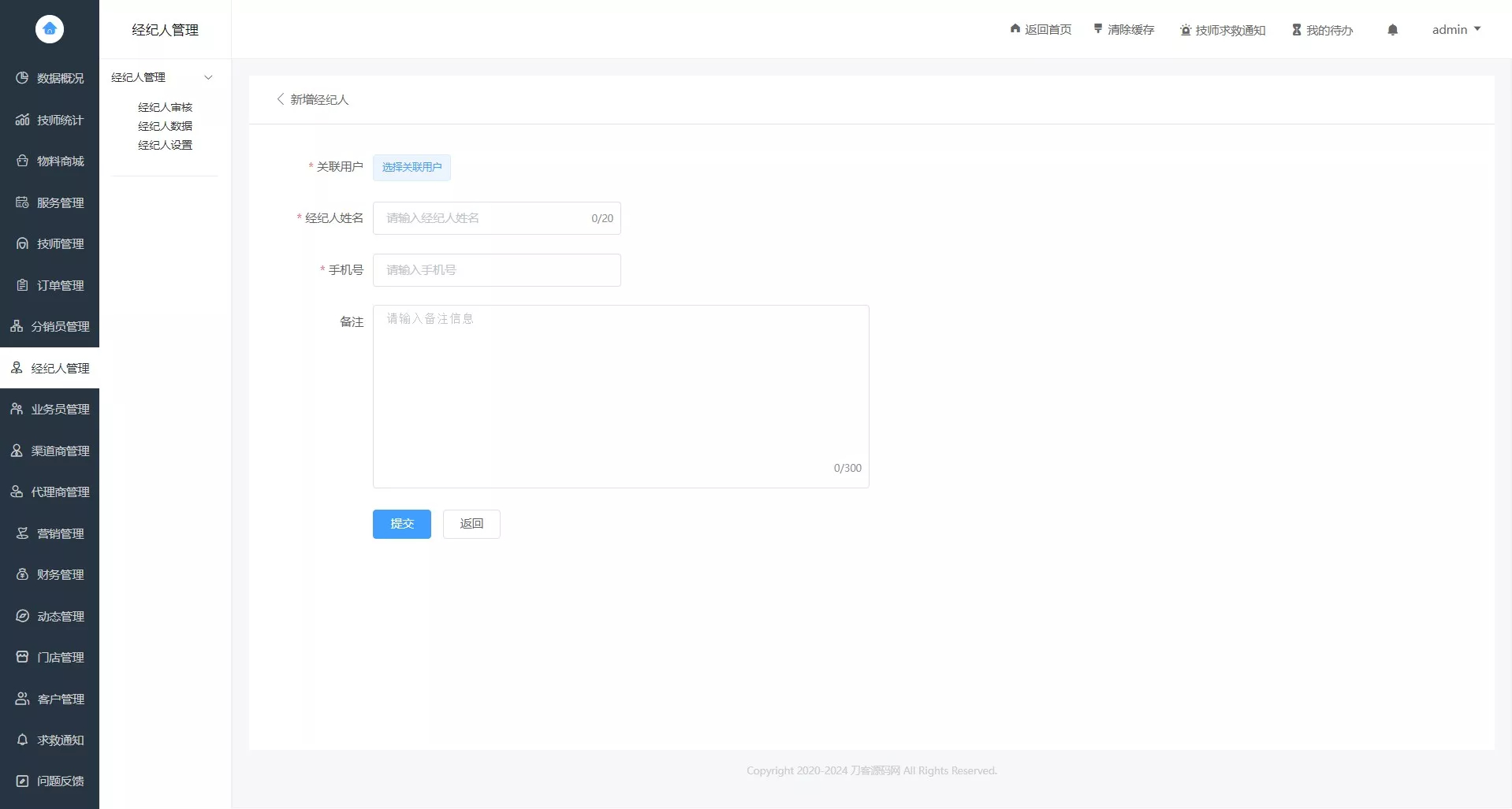 12、新增业务员角色(一般是地推人员去帮助平台或代理商发展线下渠道)。