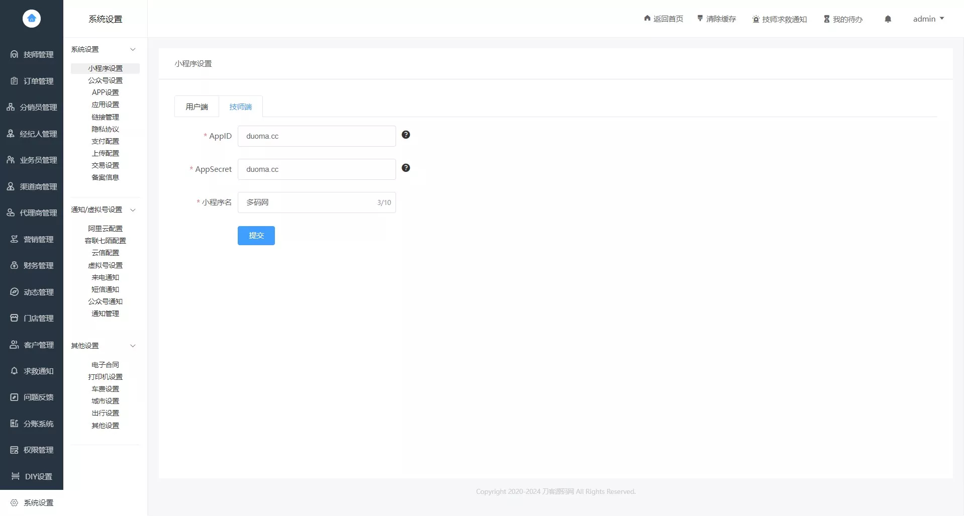 9、新增服务业文字修改,修改之后,该系统可支持多行业上门服务使用,例如美甲师、上门维修行业等。